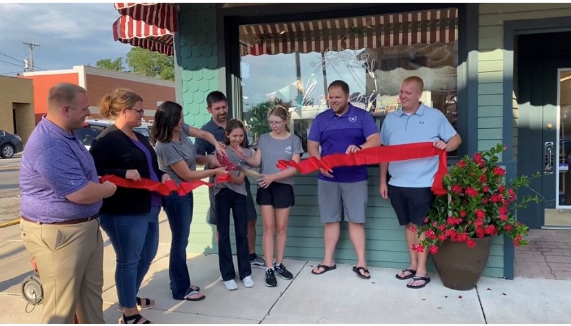 Those participating in the ceremony includes owners Jenni & Tim Smith along with their daughters Olivia and Liza. (Son Caleb is not pictured) Joining them are Chamber officers President Connor Rammel, Vice-President Thomas Shaw, Secretary Amy Wendel and Treasurer Eric Brackman.