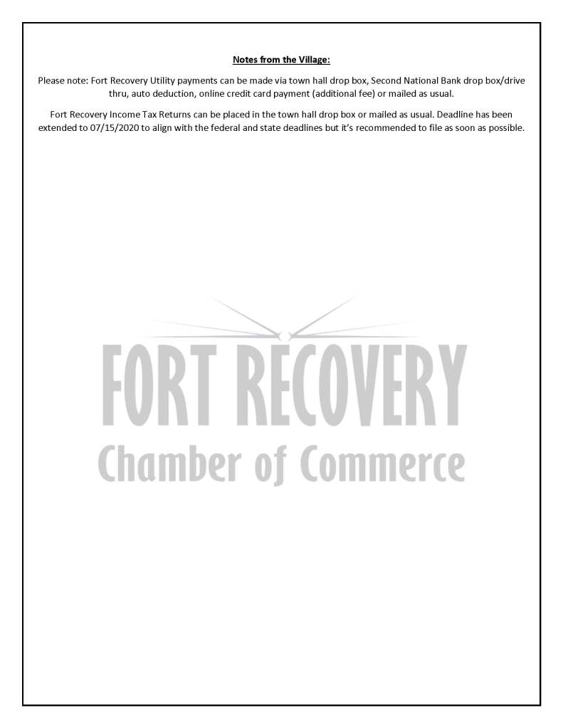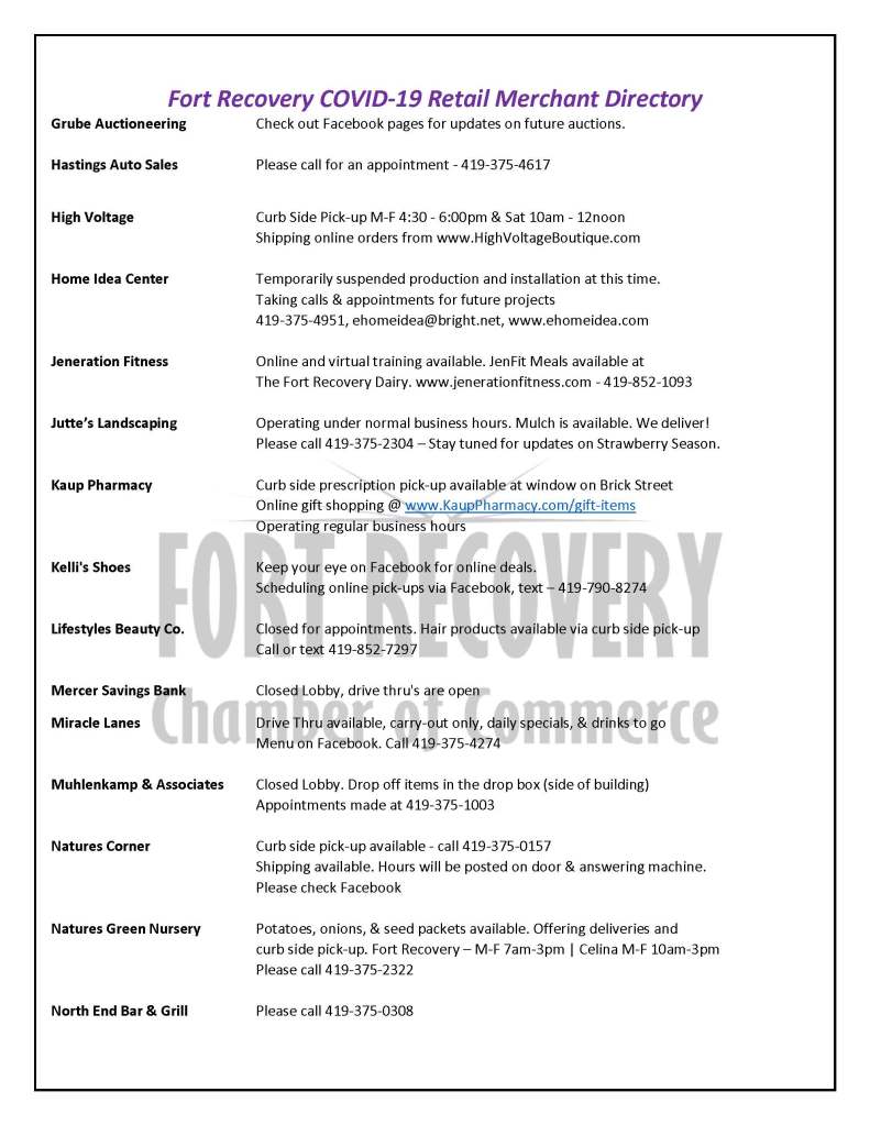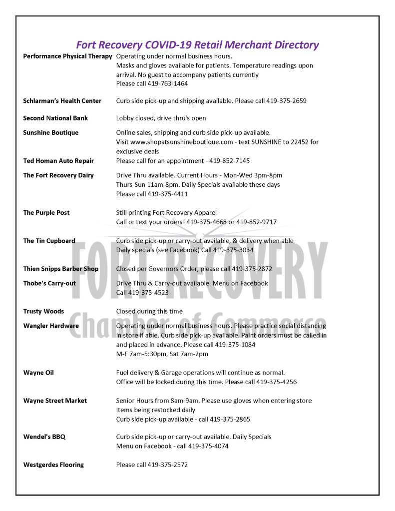 Keep up-to-date with Fort Recovery business activity as it relates to COVID-19